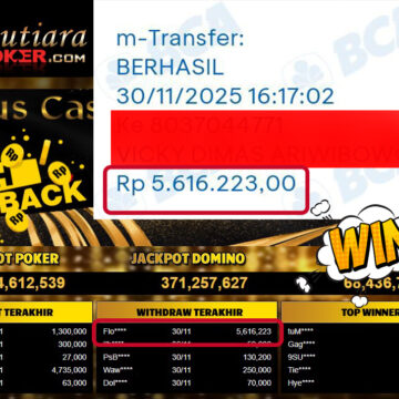 Bukti Withdraw ( 5,616,223,- ) Member Setia MutiaraPoker
