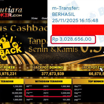 Bukti Withdraw ( 3,028,656,- ) Member Setia MutiaraPoker