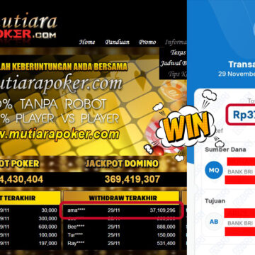 Bukti Withdraw ( 37,109,296,- ) Member Setia MutiaraPoker