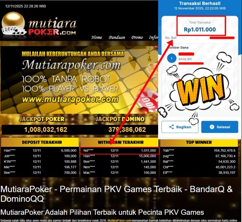 Bukti Withdraw ( 1.011.000,- ) Member Setia MutiaraPoker