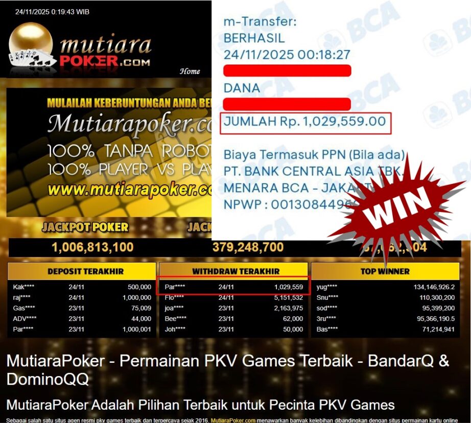 Bukti Withdraw MutiaraPoker