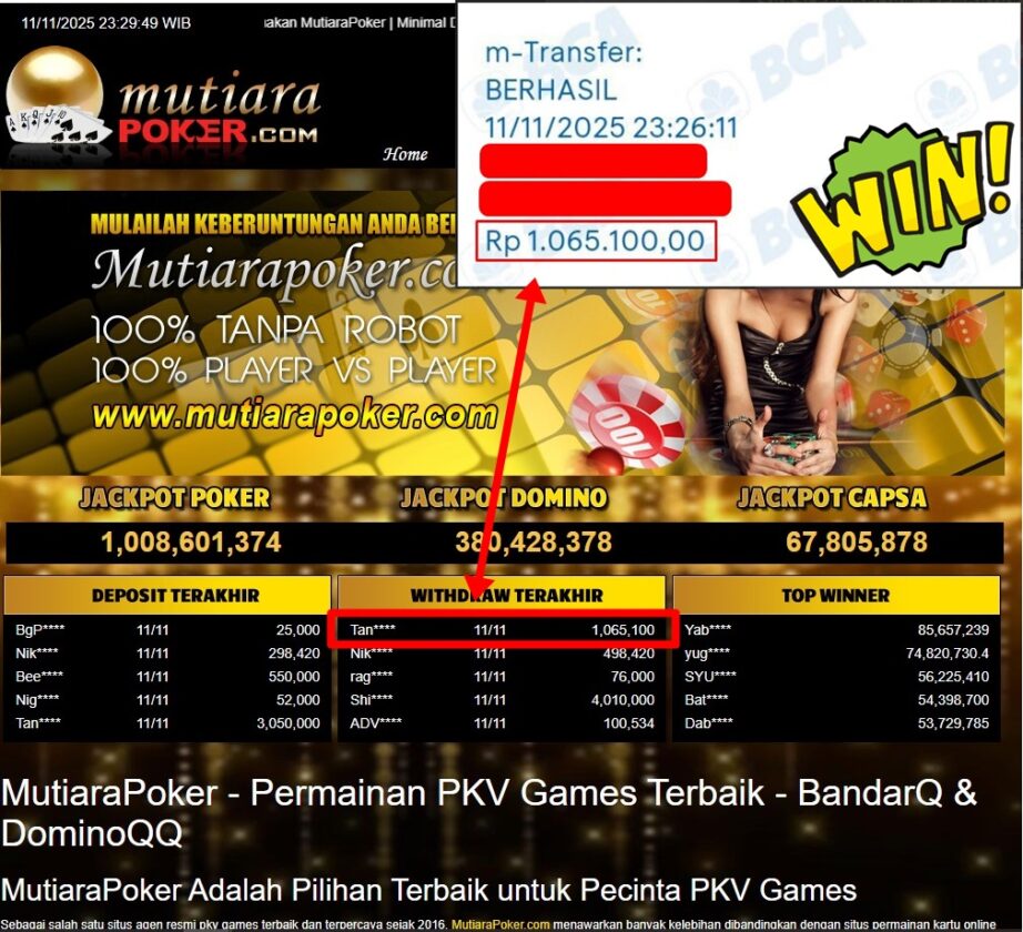 Bukti Withdraw (1.065.100,- ) Member Setia MutiaraPoker