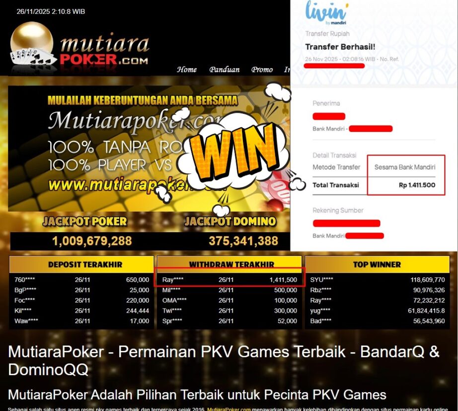 Bukti Withdraw MutiaraPoker