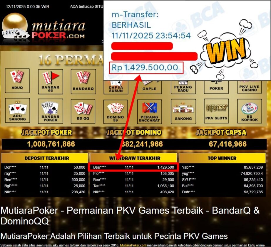 Bukti Withdraw (1.429.500 ,- ) Member Setia MutiaraPoker