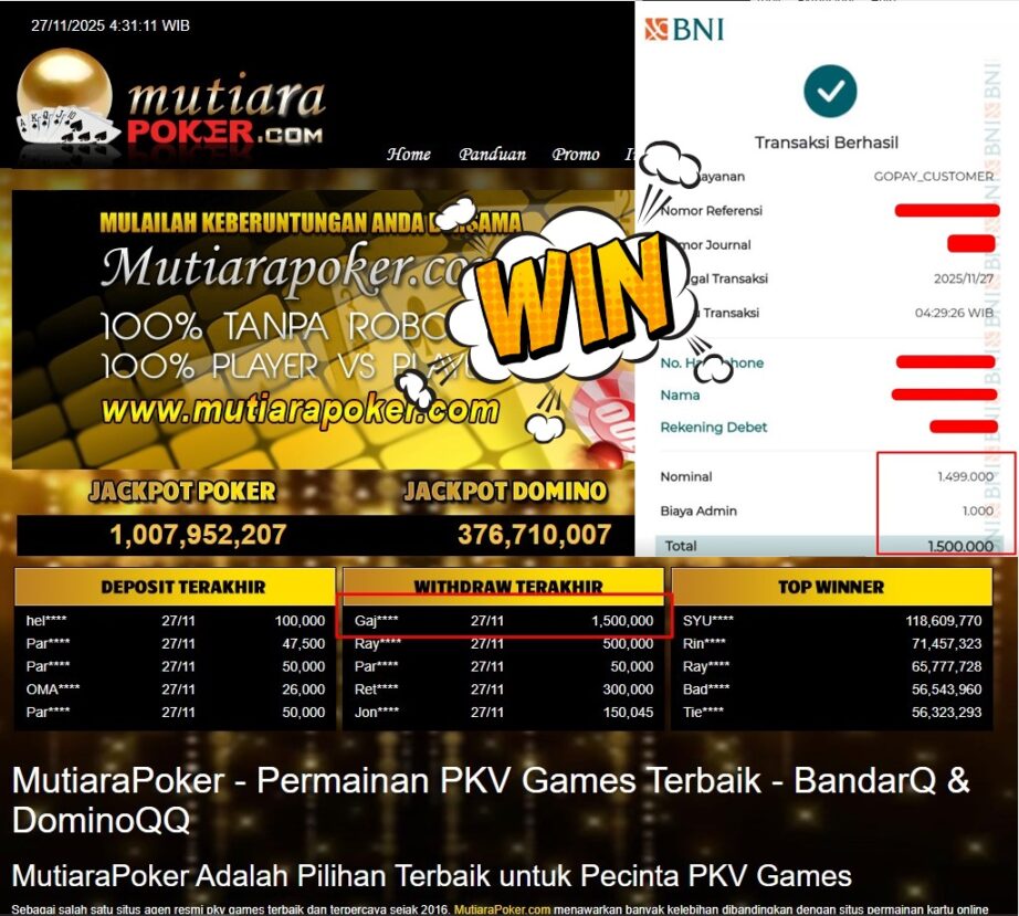 Bukti Withdraw MutiaraPoker