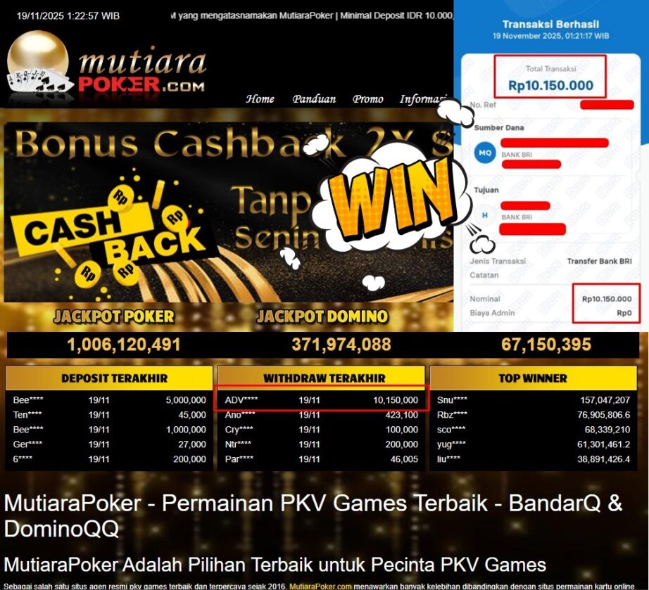 Bukti Withdraw ( 10.150.000,- ) Member Setia MutiaraPoker