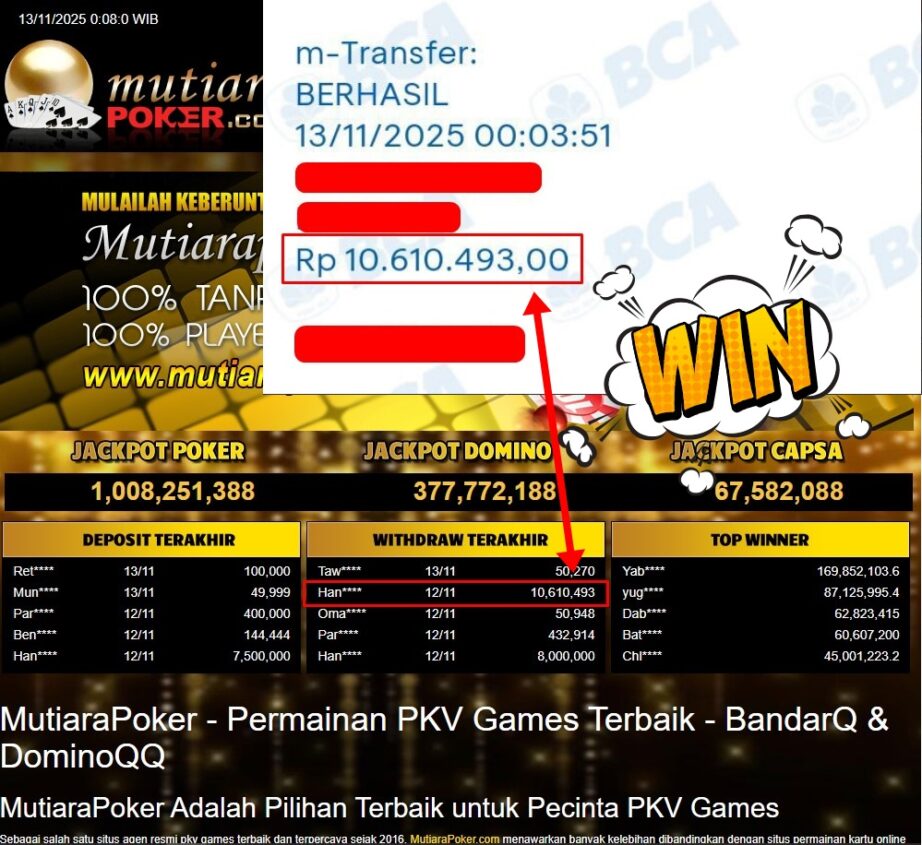 Bukti Withdraw ( 10.610.493,- ) Member Setia MutiaraPoker
