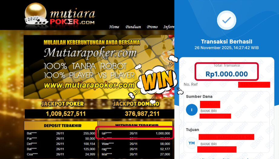 Bukti Withdraw MutiaraPoker