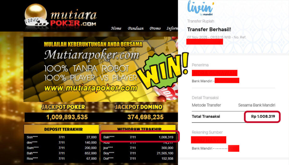 Bukti Withdraw ( 1,008,319,- ) Member Setia MutiaraPoker