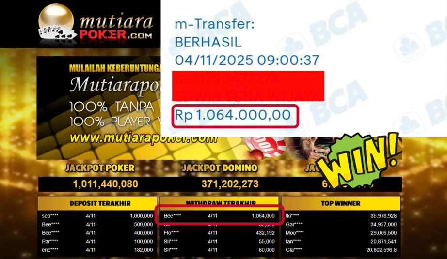 Bukti Withdraw ( 1,064,000,- ) Member Setia MutiaraPoker