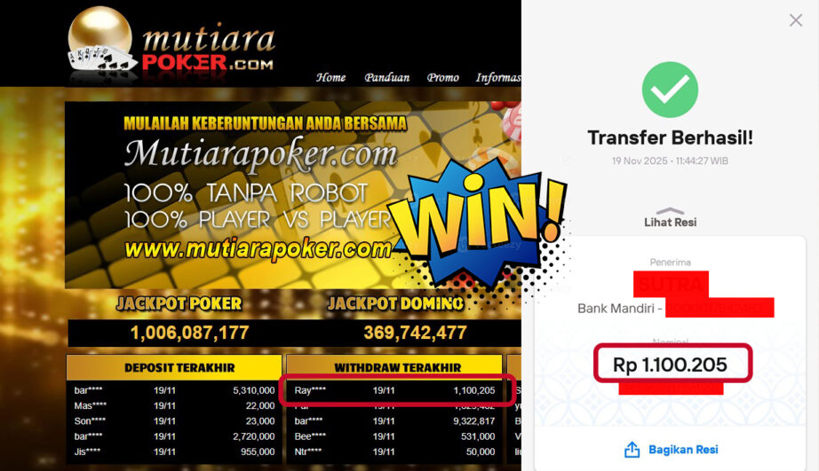 Bukti Withdraw ( 1,100,205,- ) Member Setia MutiaraPoker