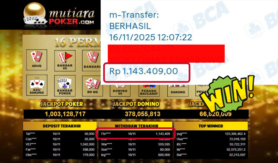 Bukti Withdraw MutiaraPoker