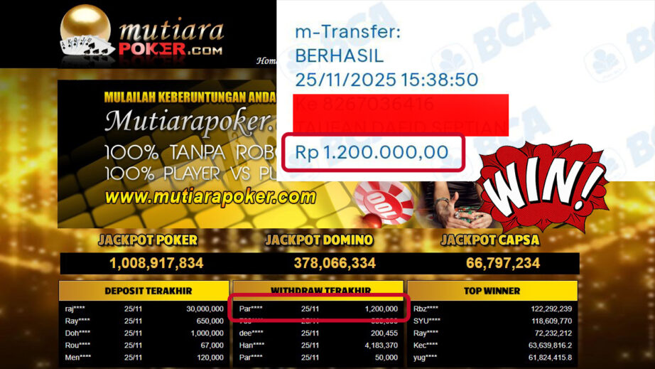 Bukti Withdraw ( 1,200,000,- ) Member Setia MutiaraPoker