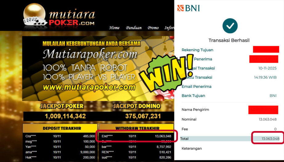 Bukti Withdraw ( 13,063,048,- ) Member Setia MutiaraPoker