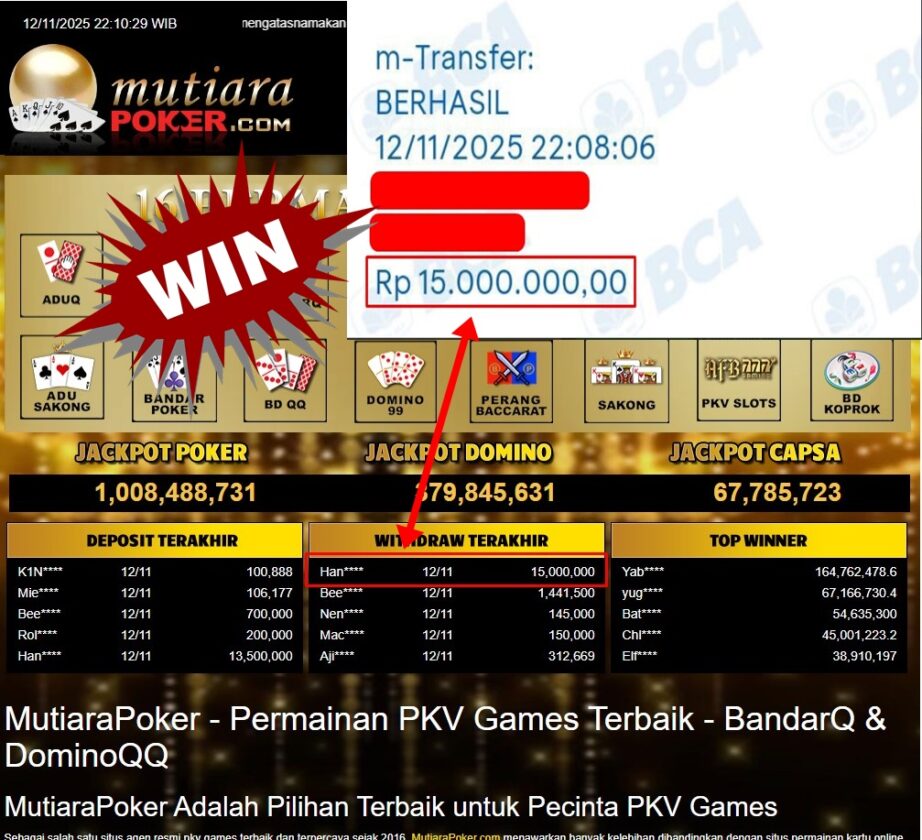 Bukti Withdraw MutiaraPoker