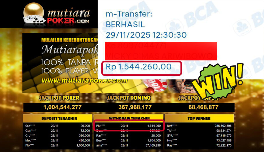 Bukti Withdraw ( 1,544,260,- ) Member Setia MutiaraPoker