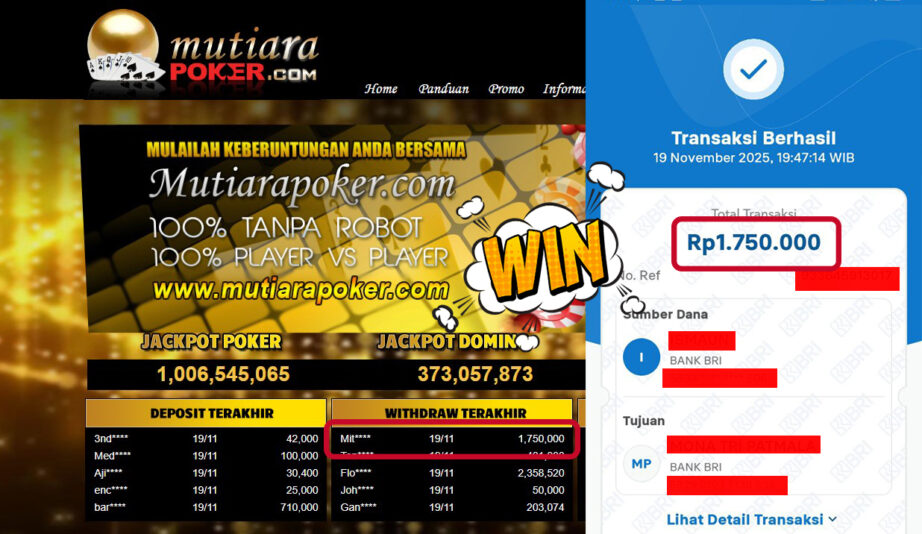 Bukti Withdraw ( 1,750,000,- ) Member Setia MutiaraPoker