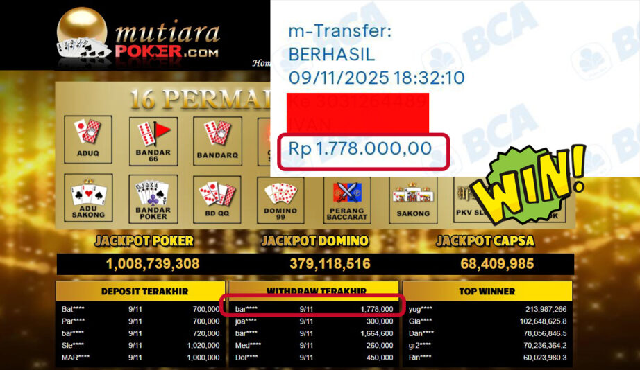 Bukti Withdraw ( 1,778,000,- ) Member Setia MutiaraPoker