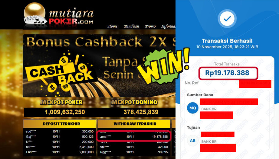 • Bukti Withdraw ( 19,178,388,- ) Member Setia MutiaraPoker