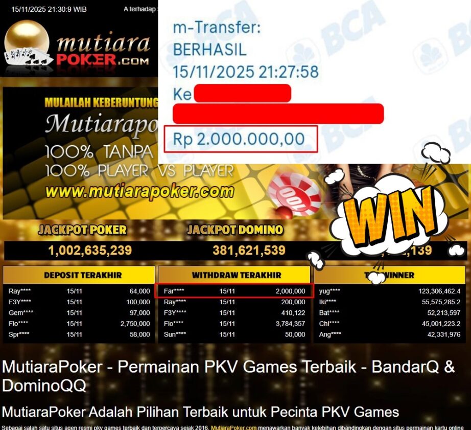 Bukti Withdraw ( 2.000.000,- ) Member Setia MutiaraPoker