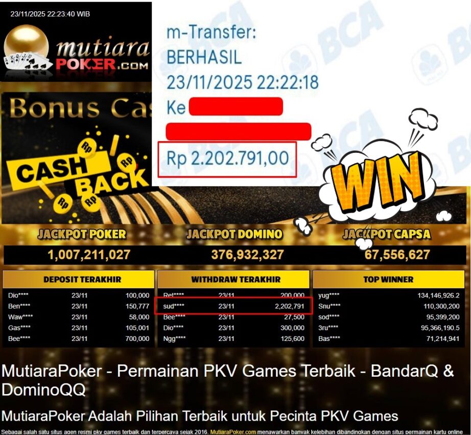 Bukti Withdraw ( 2.202.791,- ) Member Setia MutiaraPoker