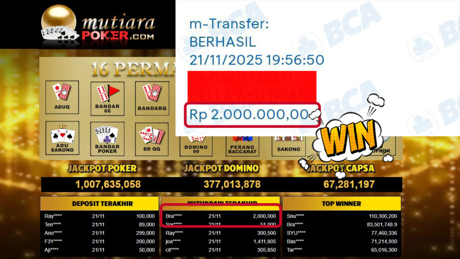Bukti Withdraw ( 2,000,000,- ) Member Setia MutiaraPoker