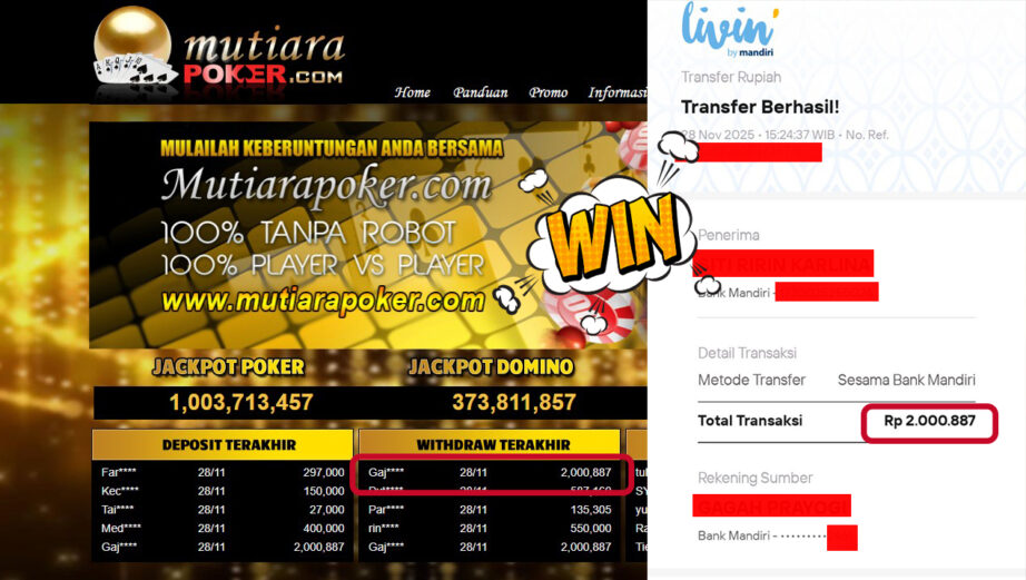 Bukti Withdraw ( 2,000,887,- ) Member Setia MutiaraPoker