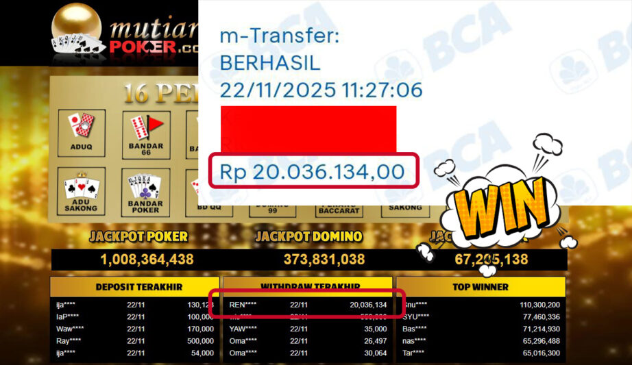 Bukti Withdraw ( 20,036,134,- ) Member Setia MutiaraPoker