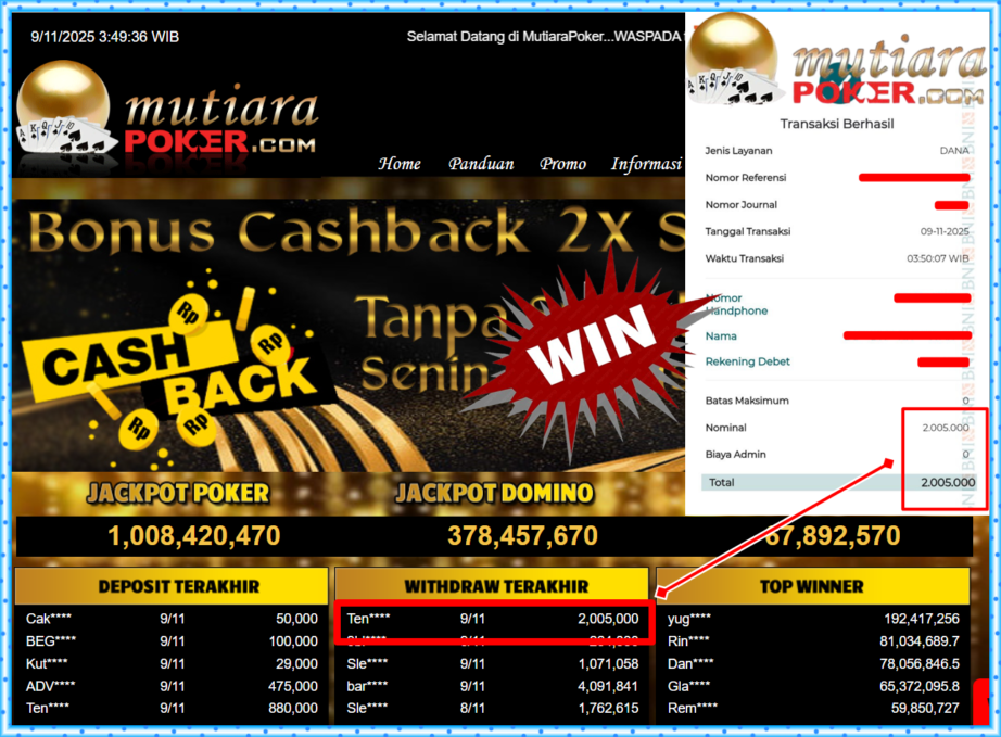 Bukti Withdraw ( 2,005,000,- ) Member Setia MutiaraPoker