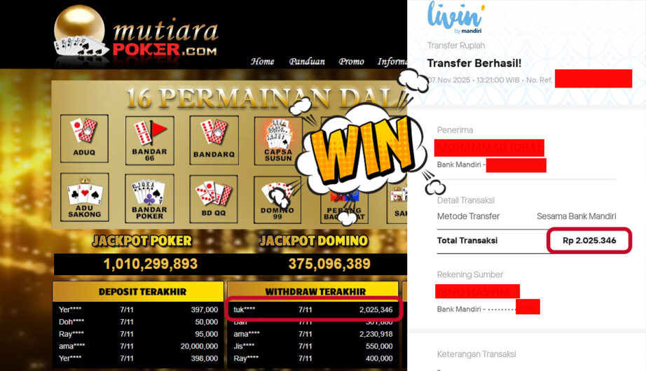 Bukti Withdraw MutiaraPoker