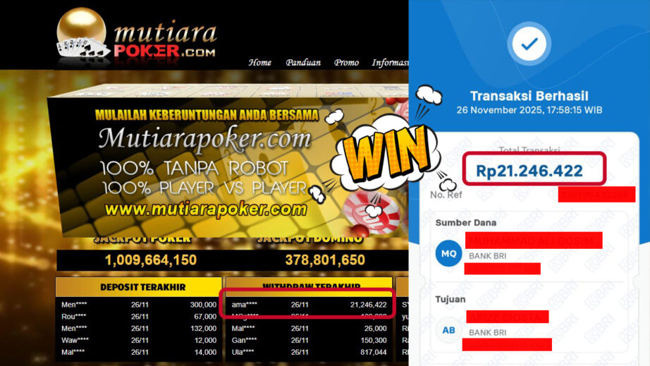 Bukti Withdraw ( 21,246,422,- ) Member Setia MutiaraPoker