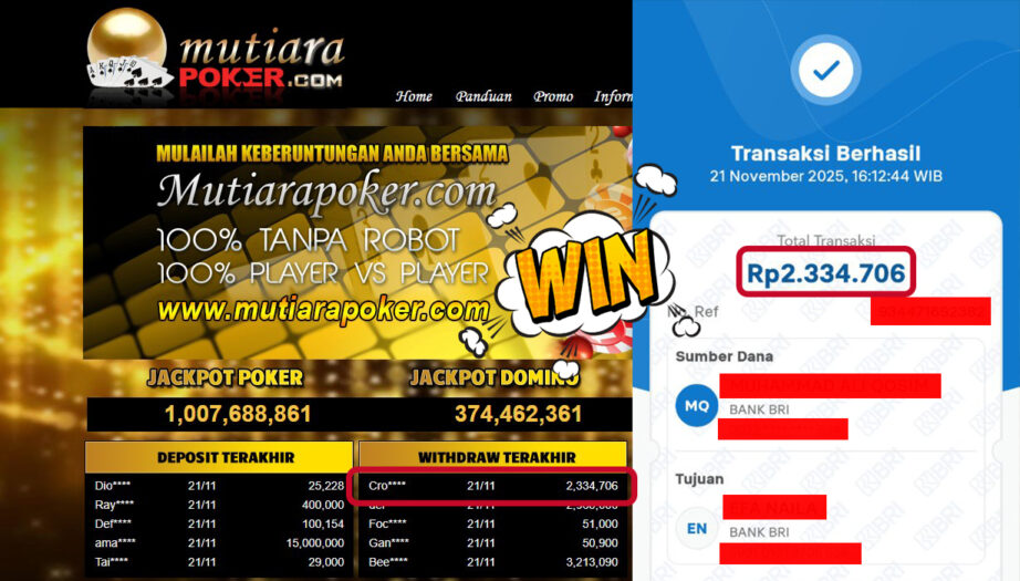 Bukti Withdraw ( 2,334,706,- ) Member Setia MutiaraPoker