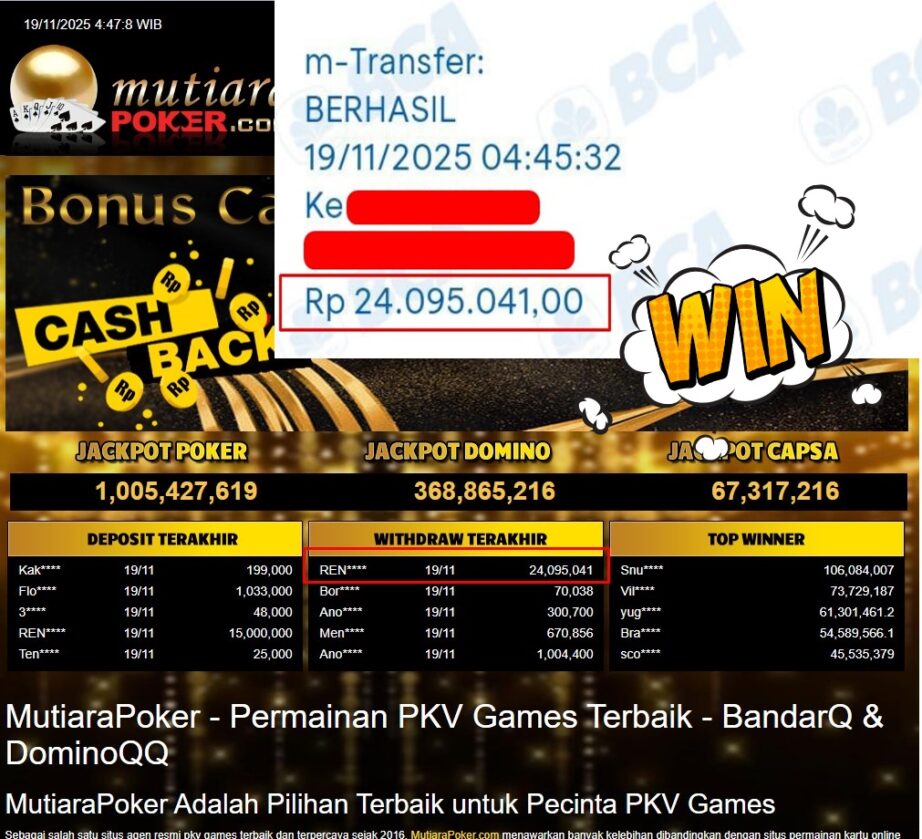 Bukti Withdraw ( 24.095.041,- ) Member Setia MutiaraPoker