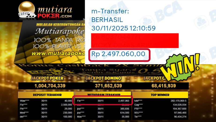 Bukti Withdraw ( 2,497,060,- ) Member Setia MutiaraPoker