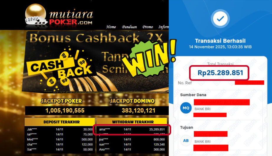 Bukti Withdraw ( 25,289,851,- ) Member Setia MutiaraPoker