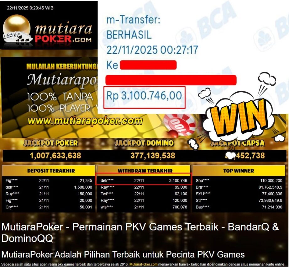 Bukti Withdraw ( 3.100.746,- ) Member Setia MutiaraPoker