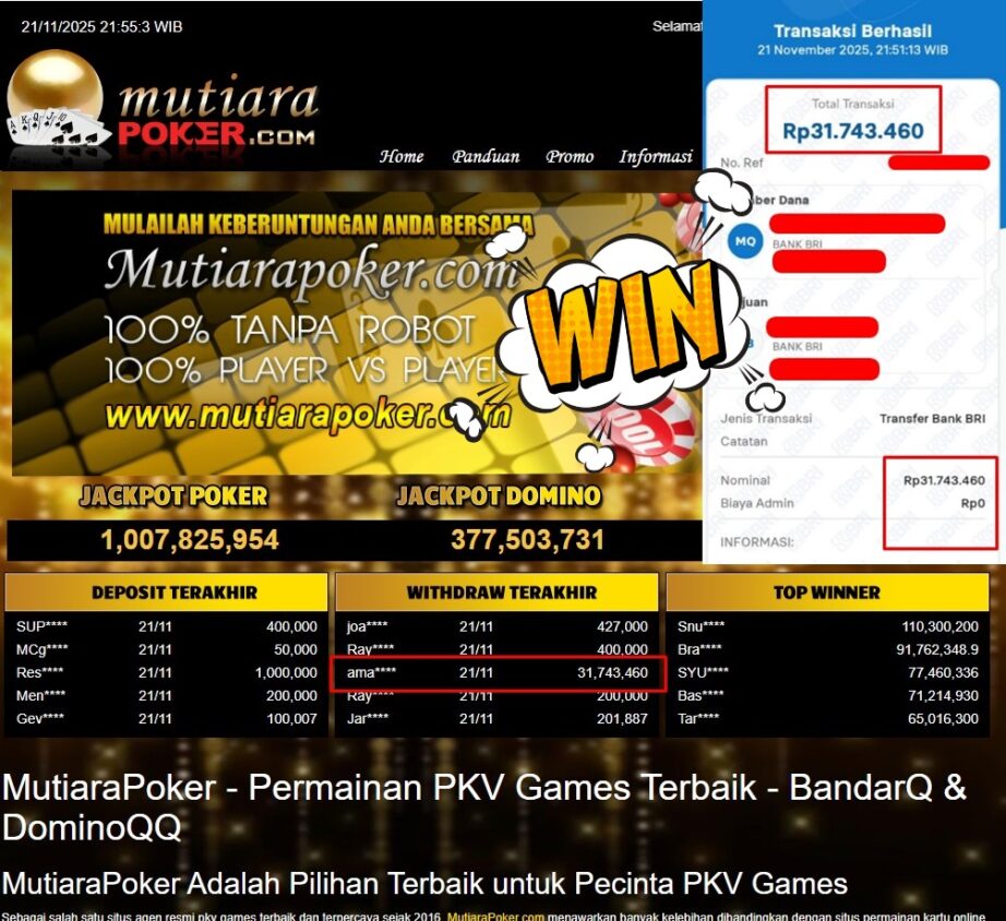 Bukti Withdraw MutiaraPoker