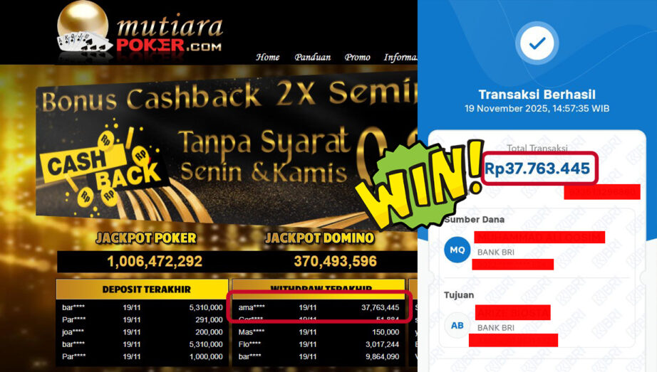 Bukti Withdraw MutiaraPoker