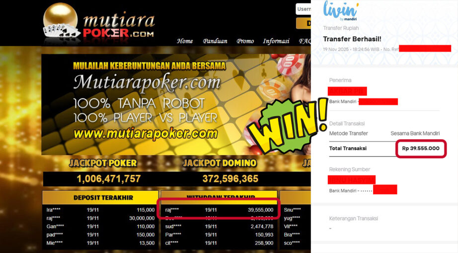 Bukti Withdraw ( 39,555,000,- ) Member Setia MutiaraPoker