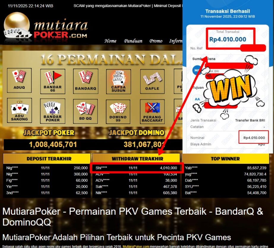 Bukti Withdraw ( 4.010.000,- ) Member Setia MutiaraPoker