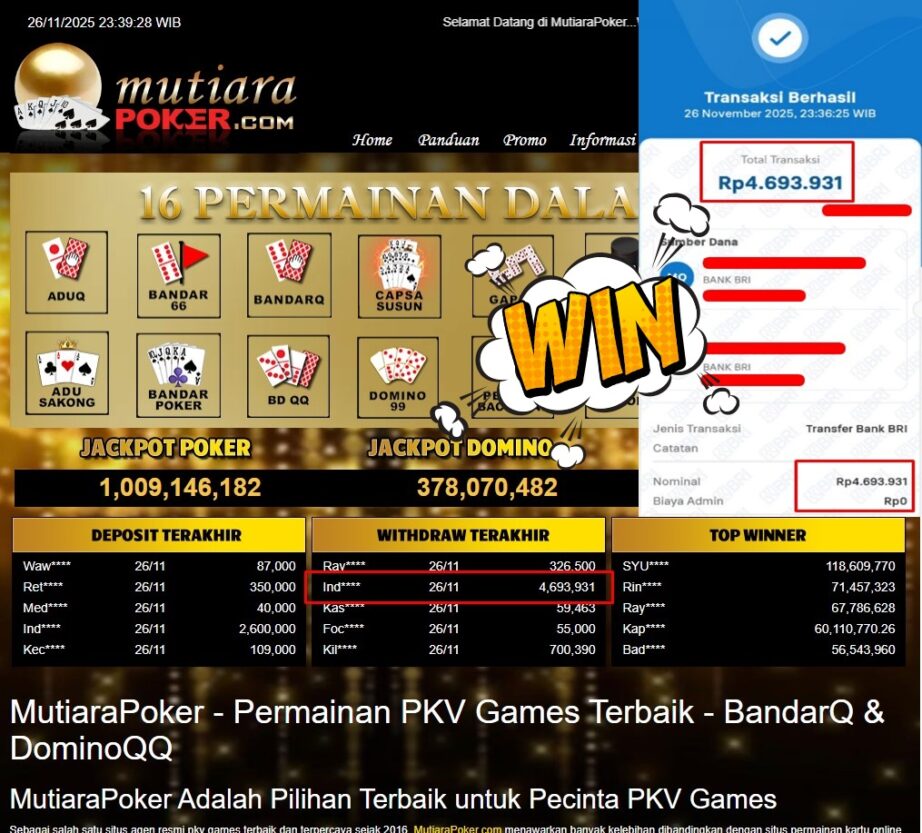 Bukti Withdraw ( 4.693.931,- ) Member Setia MutiaraPoker