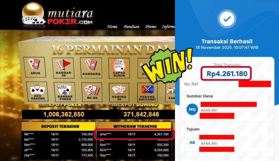 Bukti Withdraw ( 4,261,180,- ) Member Setia MutiaraPoker