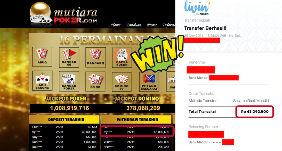 Bukti Withdraw ( 43,090,500,- ) Member Setia MutiaraPoker