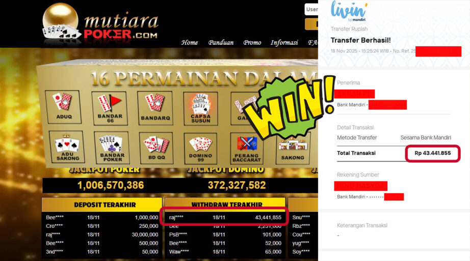 Bukti Withdraw ( 43,441,855,- ) Member Setia MutiaraPoker