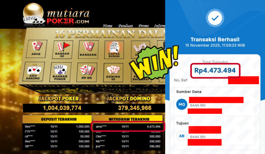 Bukti Withdraw ( 4,473,494,- ) Member Setia MutiaraPoker