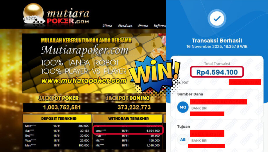 Bukti Withdraw ( 4,594,100,- ) Member Setia MutiaraPoker