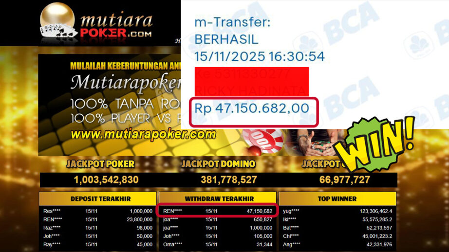 Bukti Withdraw ( 47,150,682,- ) Member Setia MutiaraPoker