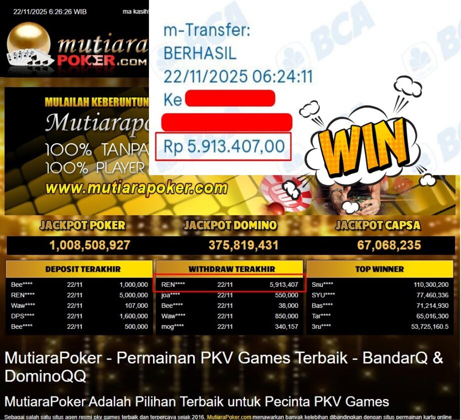 Bukti Withdraw ( 5.913.407,- ) Member Setia MutiaraPoker