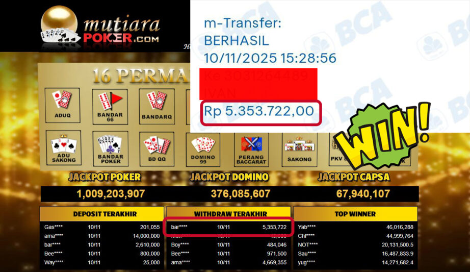 Bukti Withdraw ( 5,353,722,- ) Member Setia MutiaraPoker