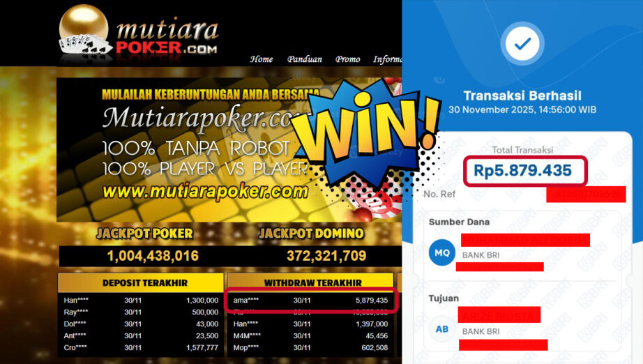Bukti Withdraw ( 5,879,435,- ) Member Setia MutiaraPoker